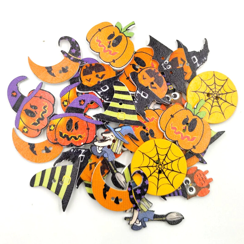 Product information: Structure: eyelet button Style: European and American Item No.: QH-204 Material: Wooden Scope of Application: hat Packing list: Halloween Decorative Wood Chips*50 Product Image: