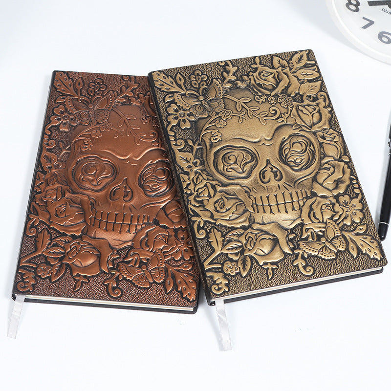 Tags : 100 sheets record book, bronze relief journal, corporate gifts stationery, embossed skull diary, halloween notepad gift, pu cover notebook a5,
