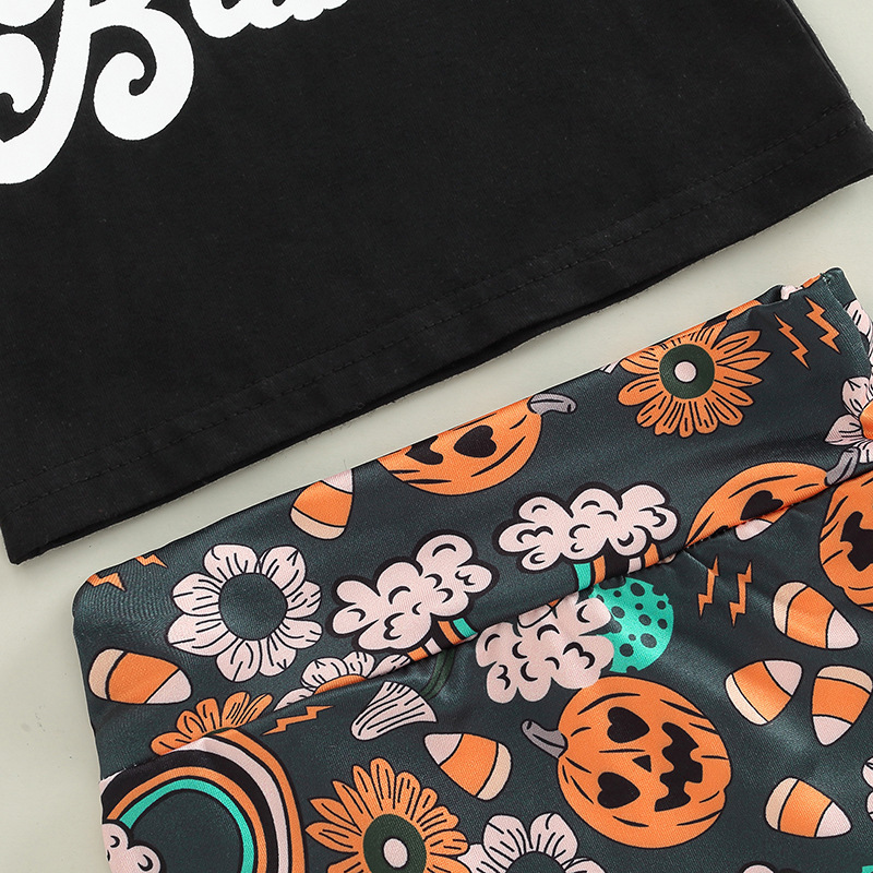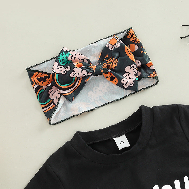 European And American Girls Halloween Alphabet Print Short Sleeve Suit