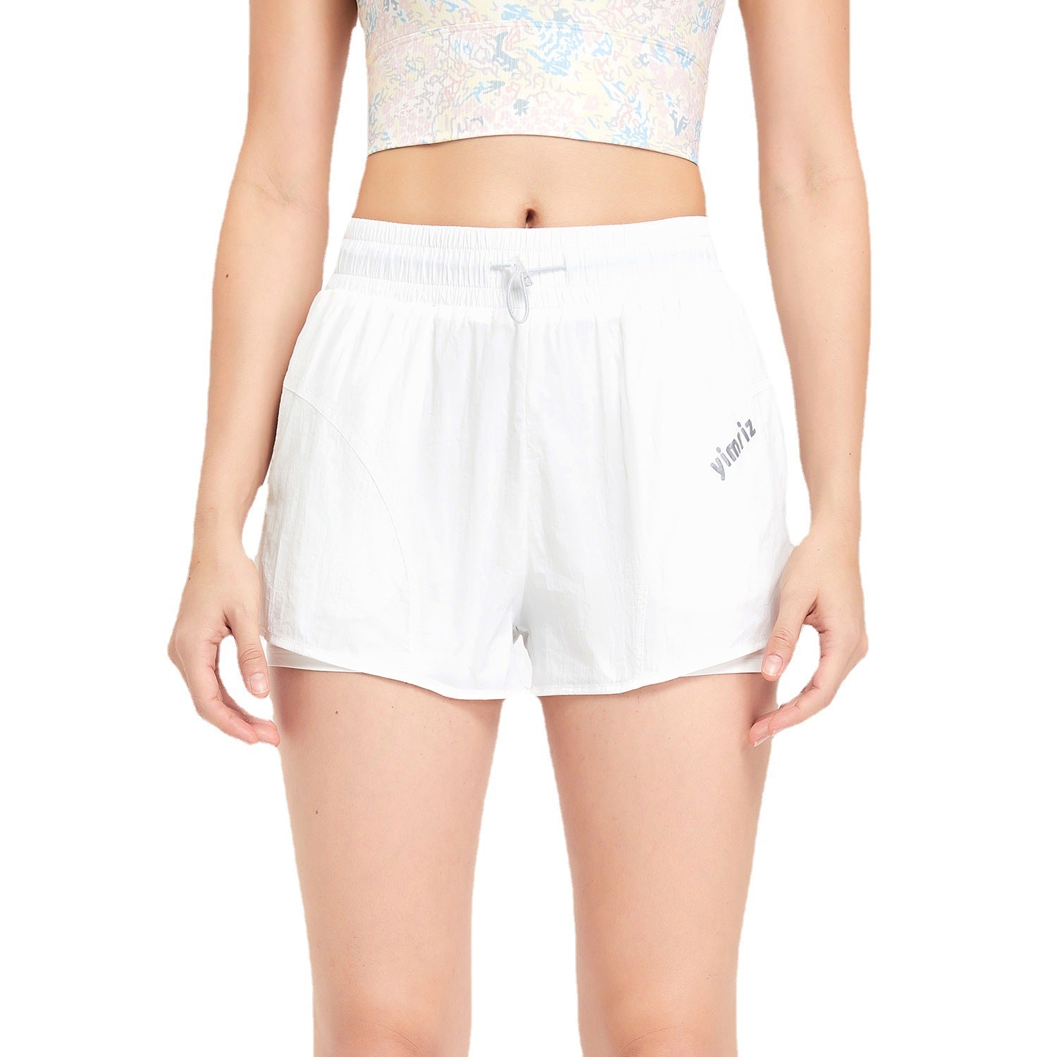 Fake Two-piece Sports Shorts High Waist Drawstring Anti-exposure