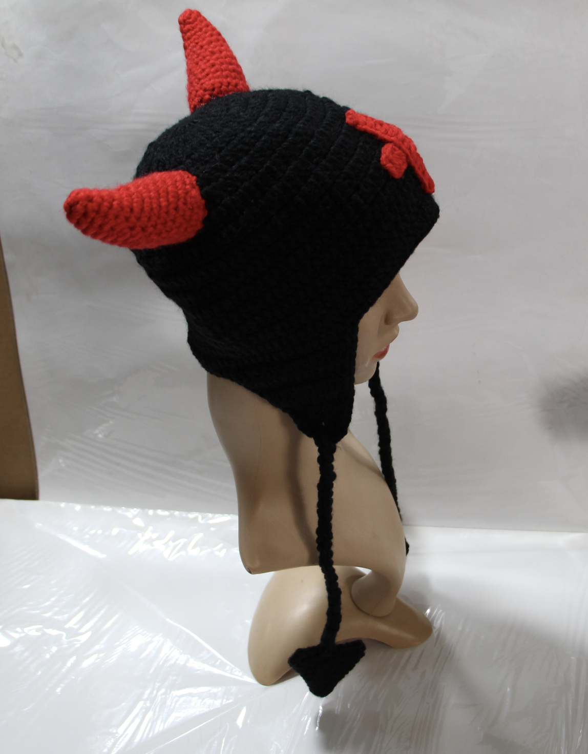 Tags : funny horned hat, halloween devil hat, jacquard wool beanie, knitted devil horn hat, tassel knitted cap, unisex wool hat,