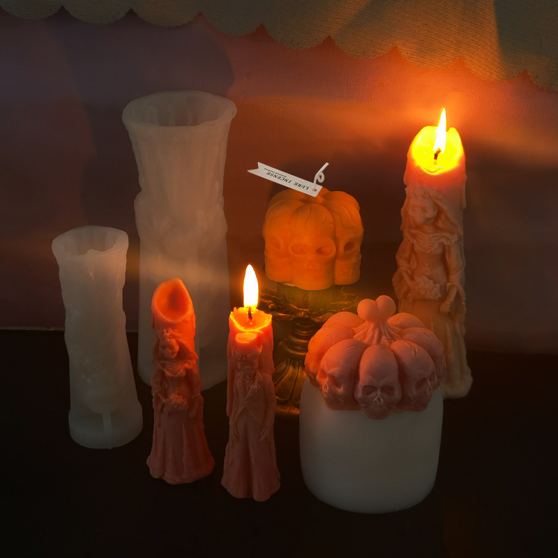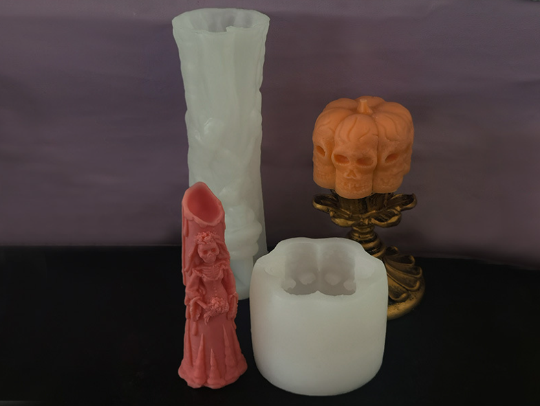 Specifications: Large Ghost Groom WS-53, Large Ghost Bride WS-52, Eight Pumpkin Skulls WS-51, Six Pumpkin Skulls WS-50, Men in Black WS-54, Small Ghost Bride WS-38 ,Small Ghost Groom WS-39,Small Ghost Candle Mold WS-57,Large Ghost Candle Mold WS-58