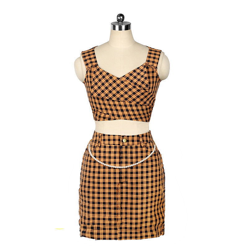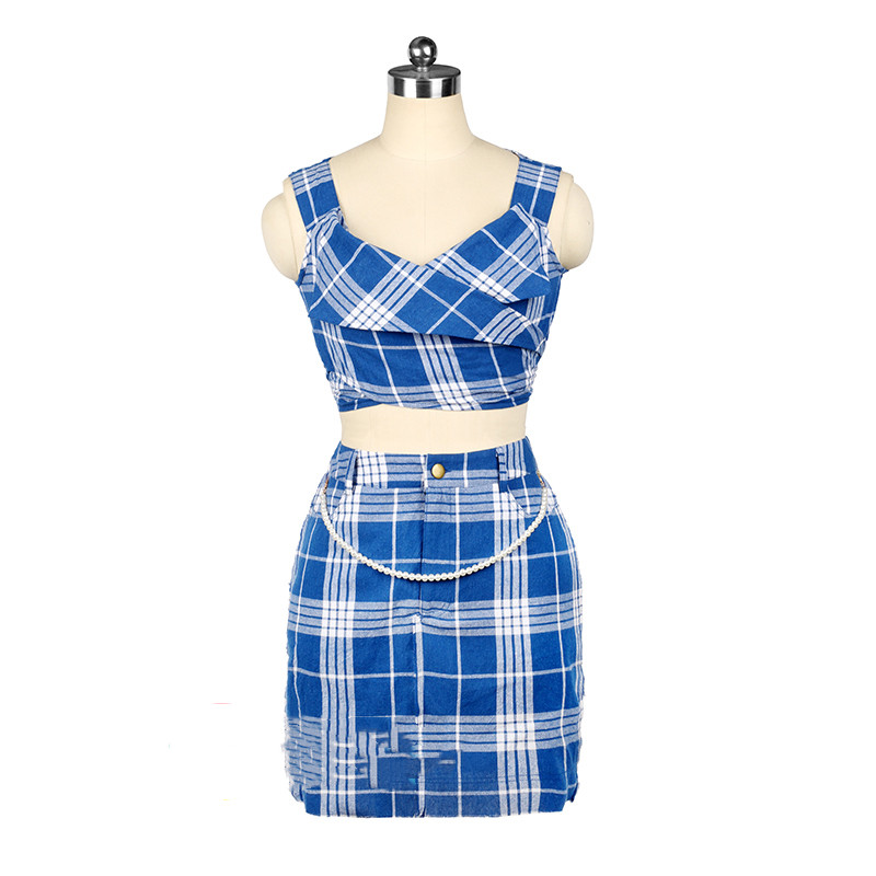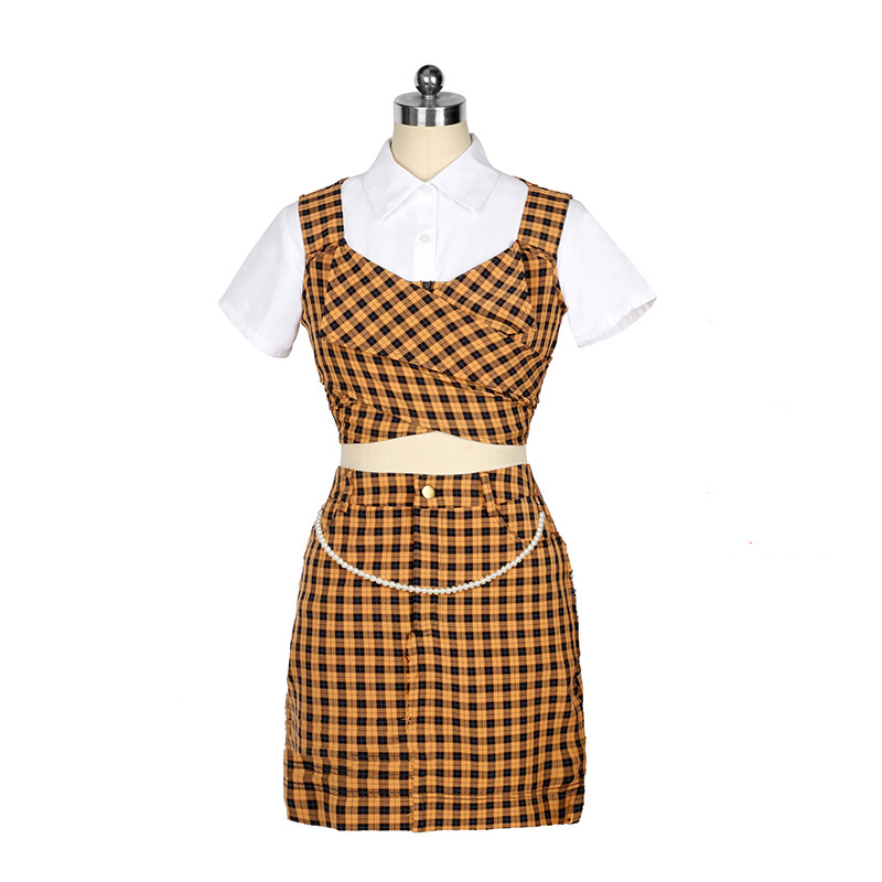 Three-piece suit: top + shirt + skirt + waist chain*1