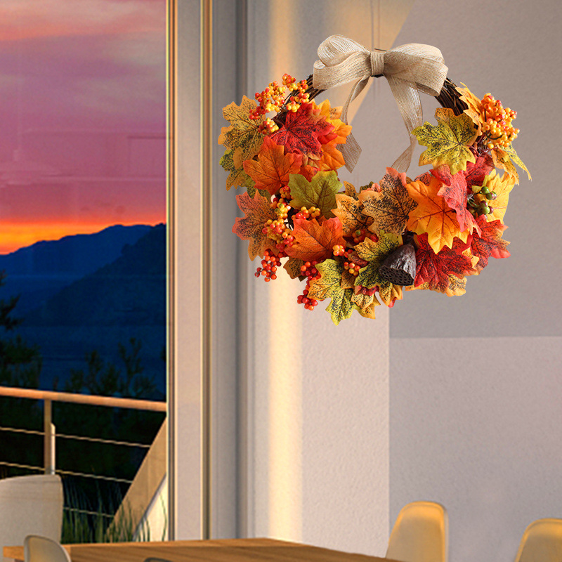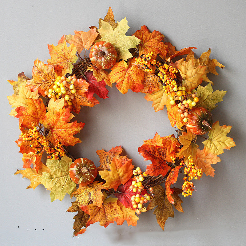 Halloween Autumn Maple Leaf Wreath Pumpkin Berry Door Hanging
