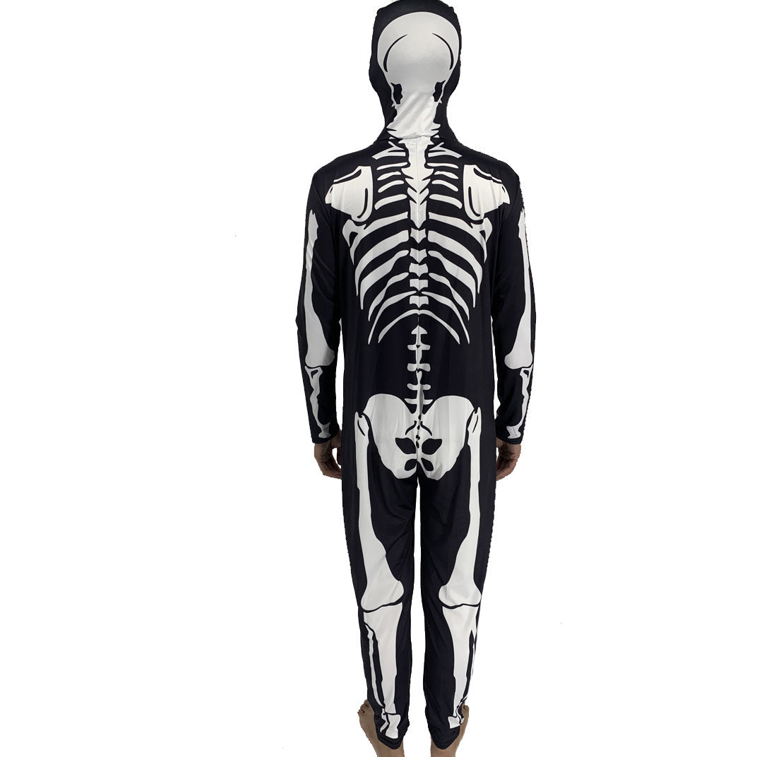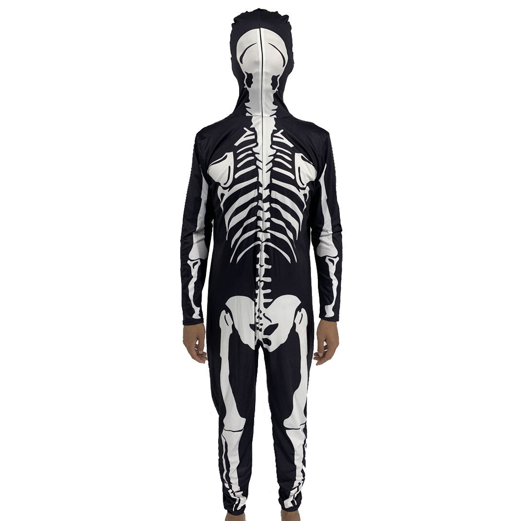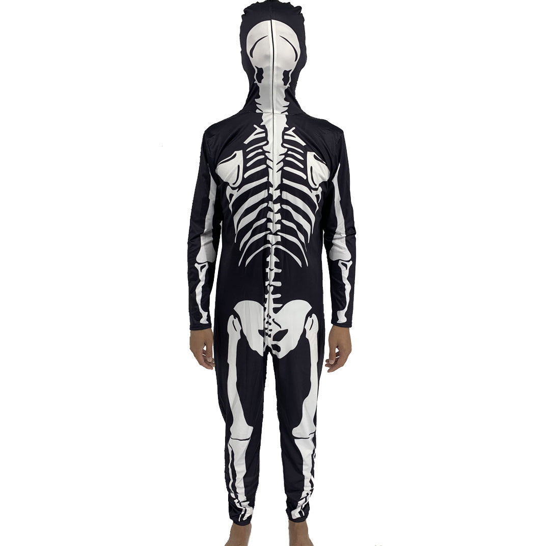 Halloween Carnival Skeleton Zipper Hooded One-piece
