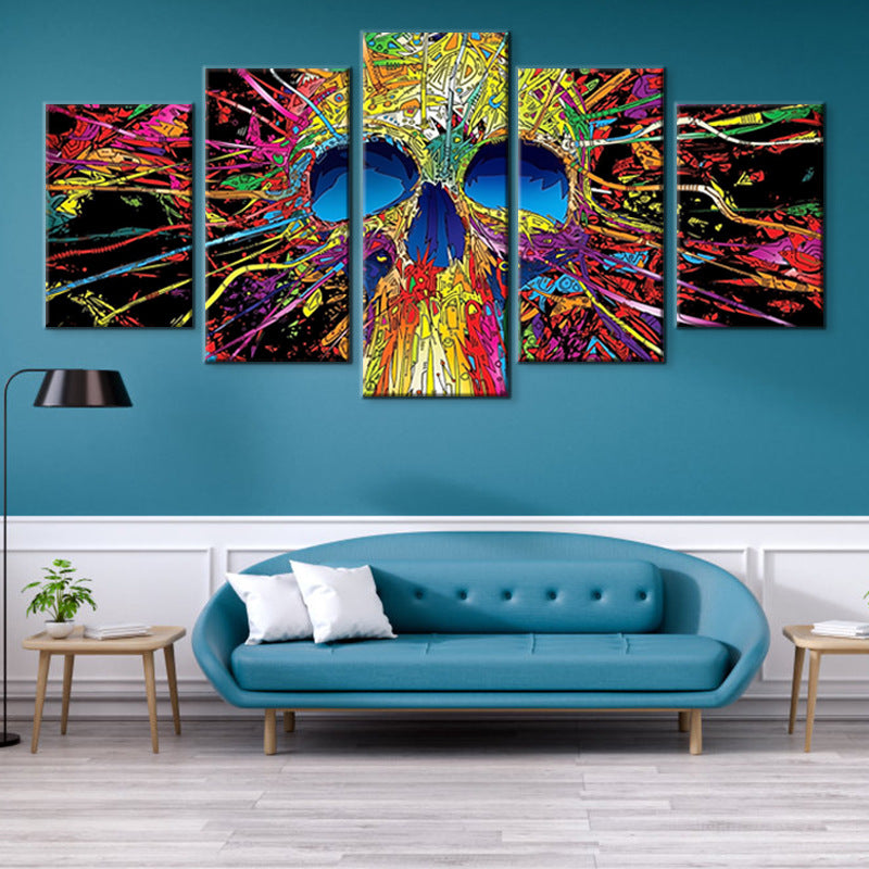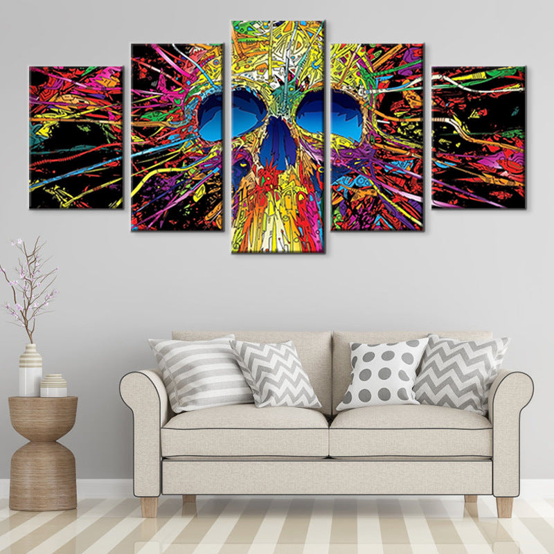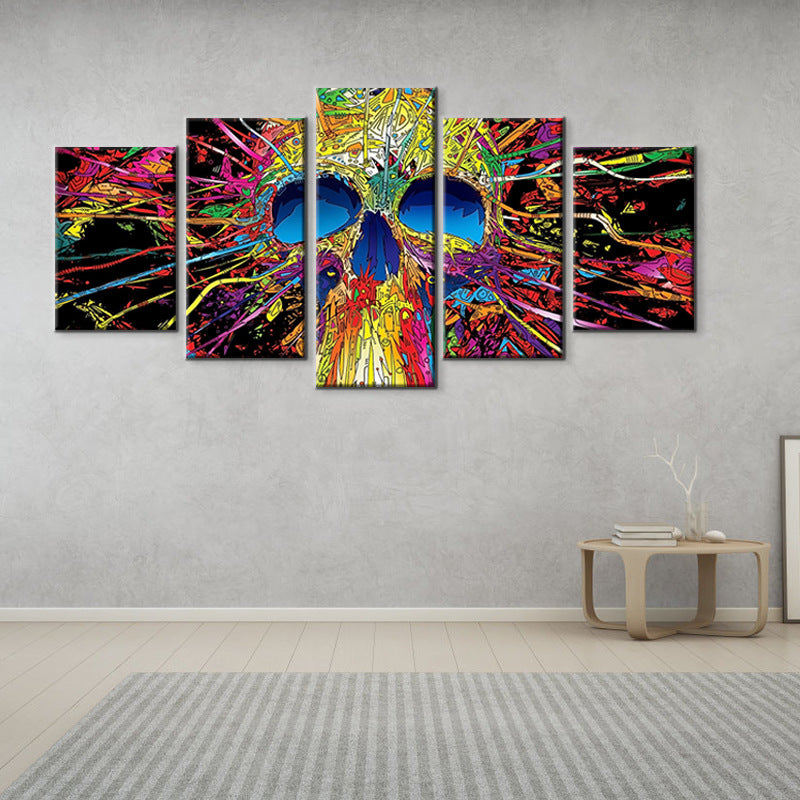 Halloween Colored Skull Computer Inkjet Oil Painting