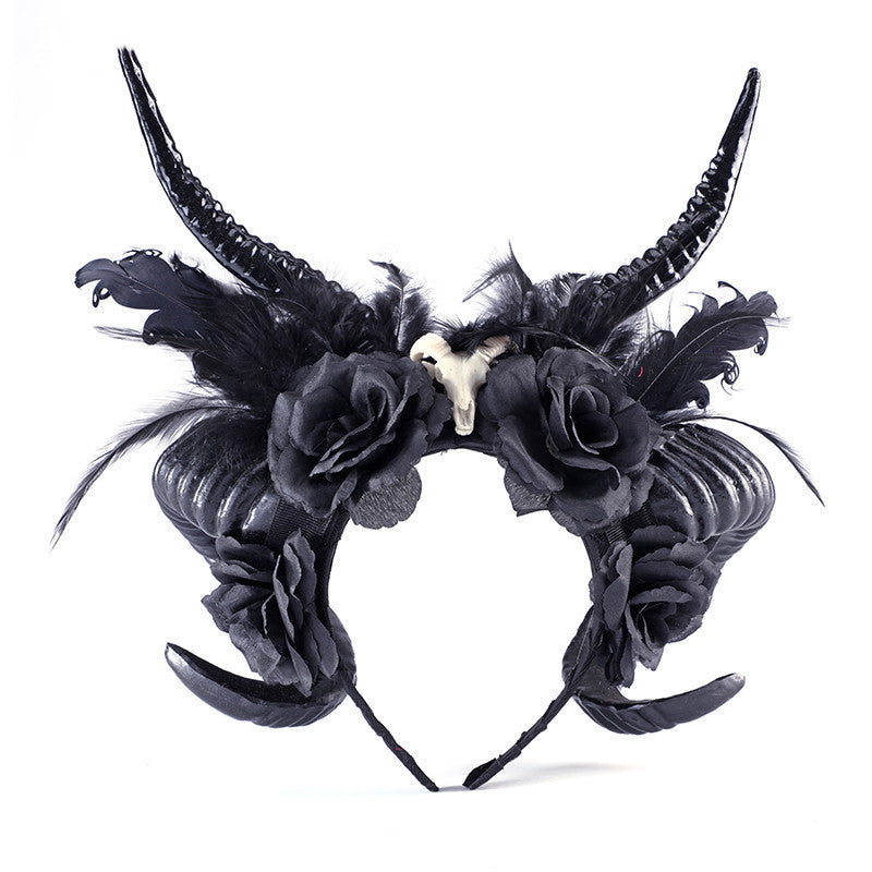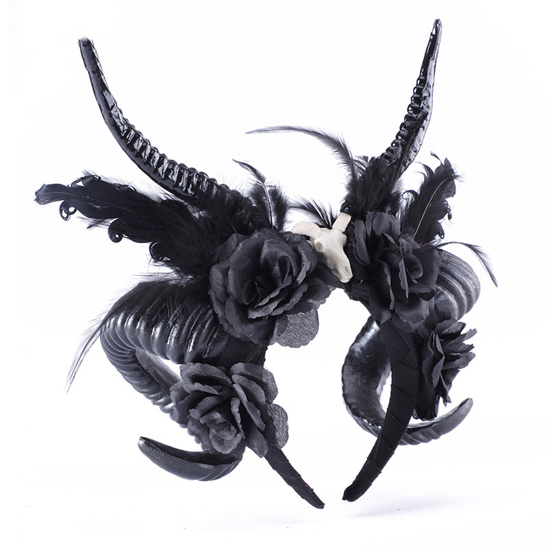 Halloween Dark COS Party Simulation Antelope Horn Black Flower Headdress