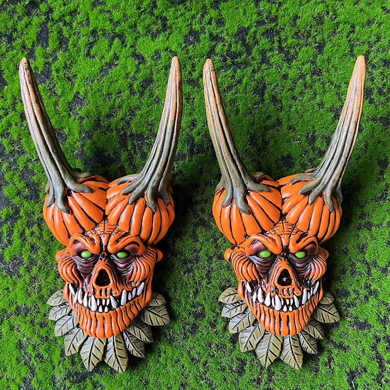 Tags : halloween decor, halloween skull decor, plastic halloween ornament, pumpkin grimace pendant, resin crafts, skull wall hanging,