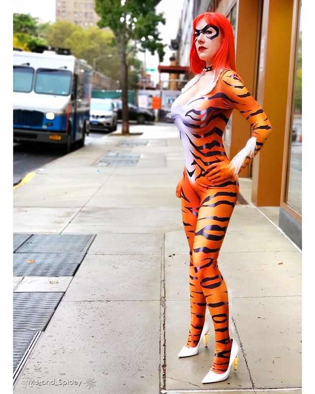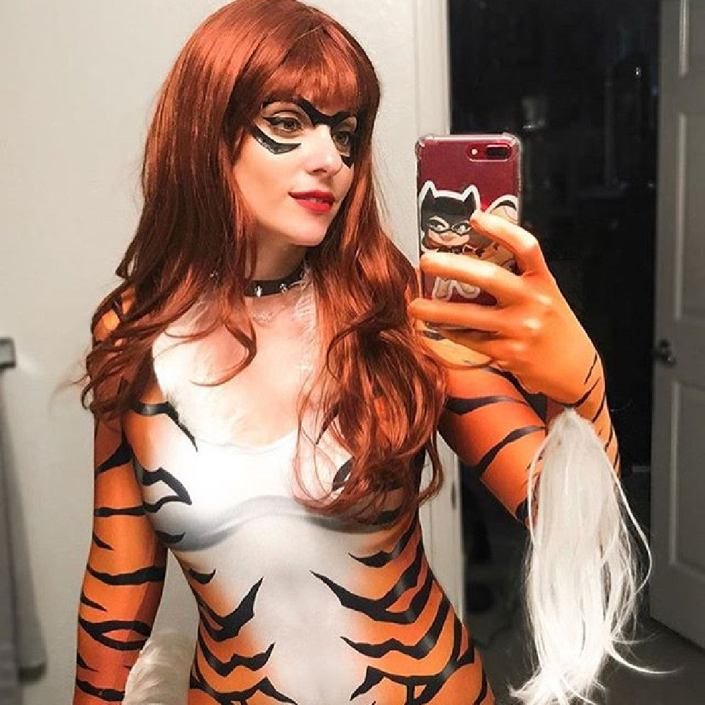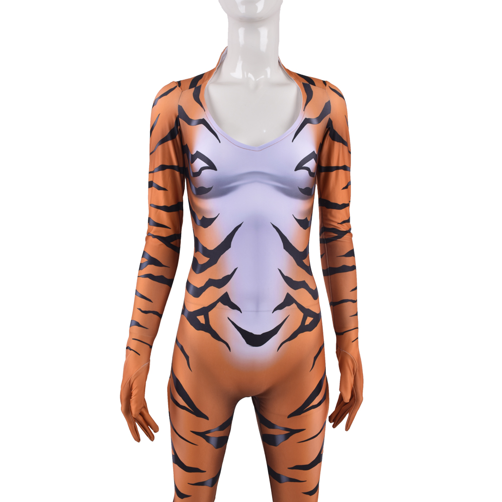 Halloween Girls Red Black Cat Cosplay Tiger Print Bodysuit