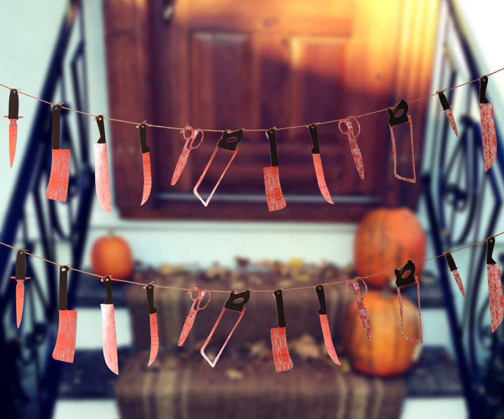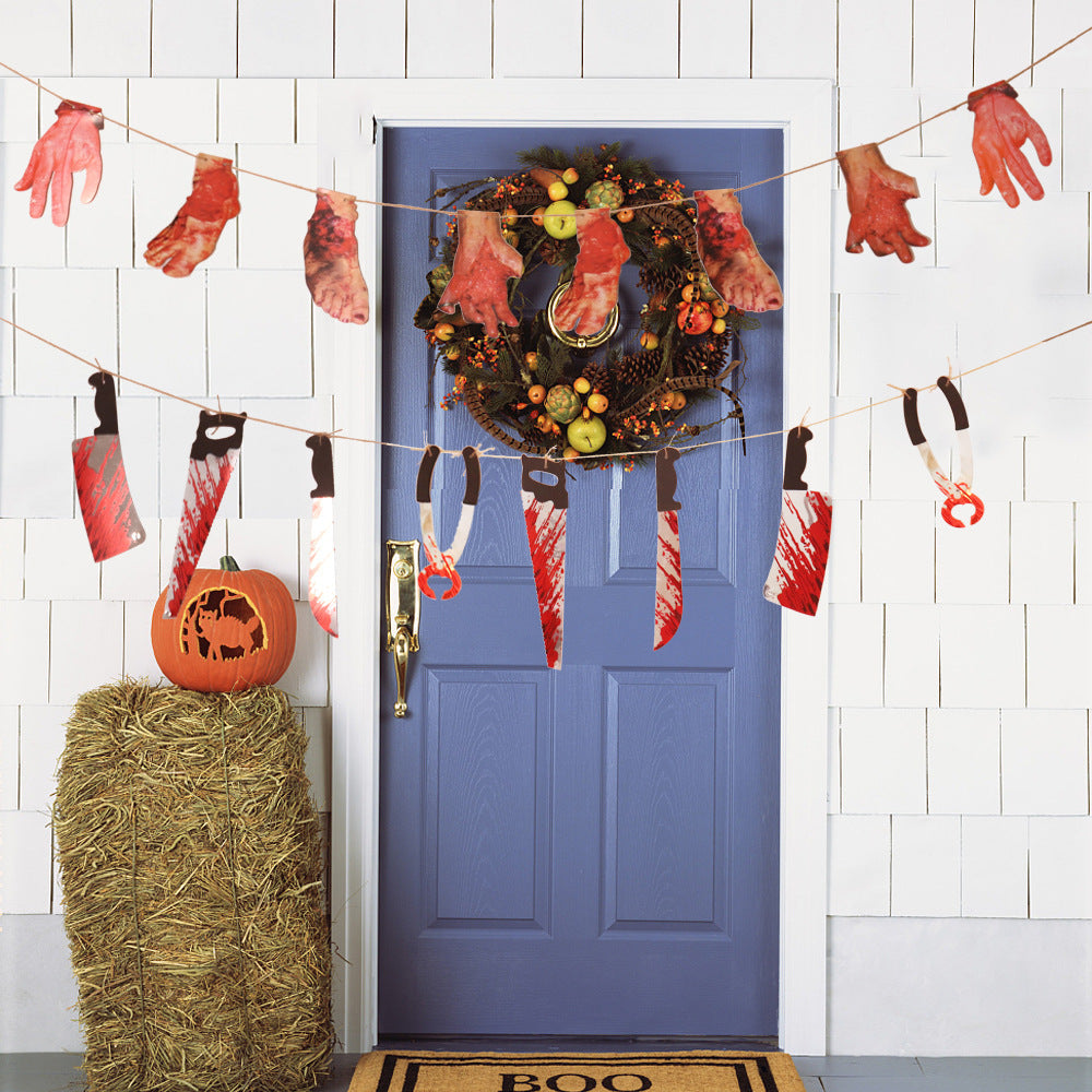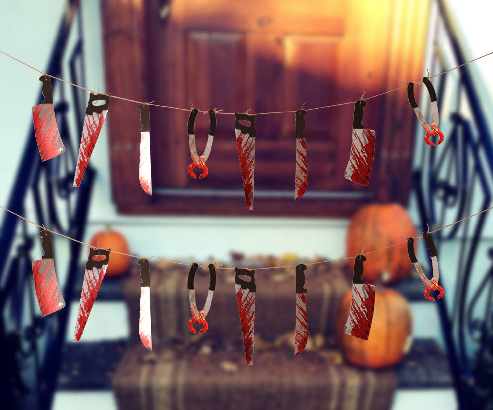 Halloween Horror Knife Flag Pulling Horror Curtain Bed Sheet