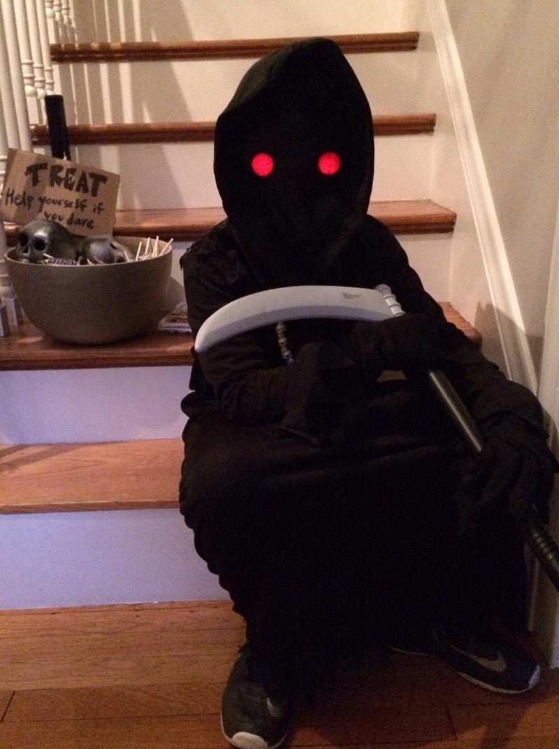 Color: death clothing sickle glowing eyes, death clothing sickle, red eye sickle
