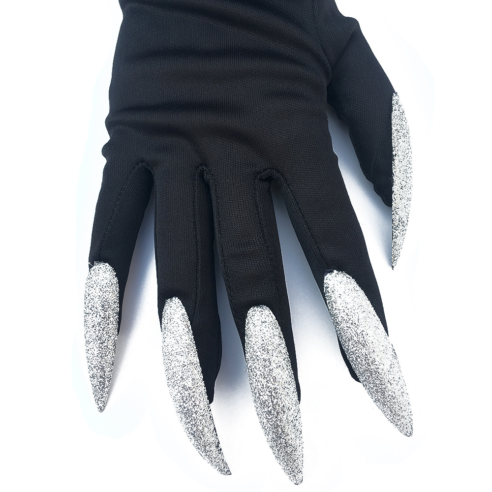 Product information: Material: Cloth Use classification: clothing gloves Applicable gender: female Processing method: flat Function: Decoration Pattern: Monochrome Style: Split Finger Gloves Color: silver nails, black nails size: one size Packing list: A pair of...
