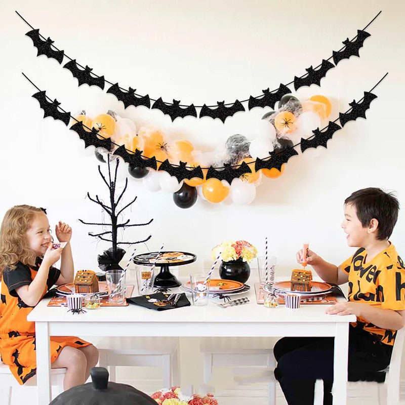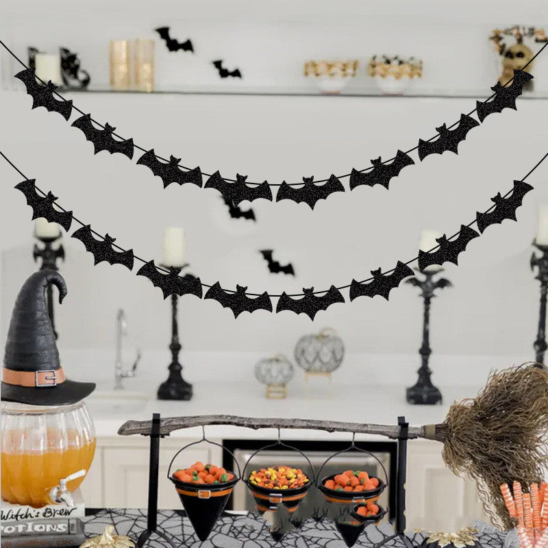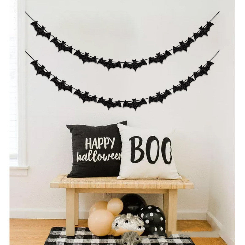 Halloween Party Decoration String Flag Banner Bat Glitter Pull Flower