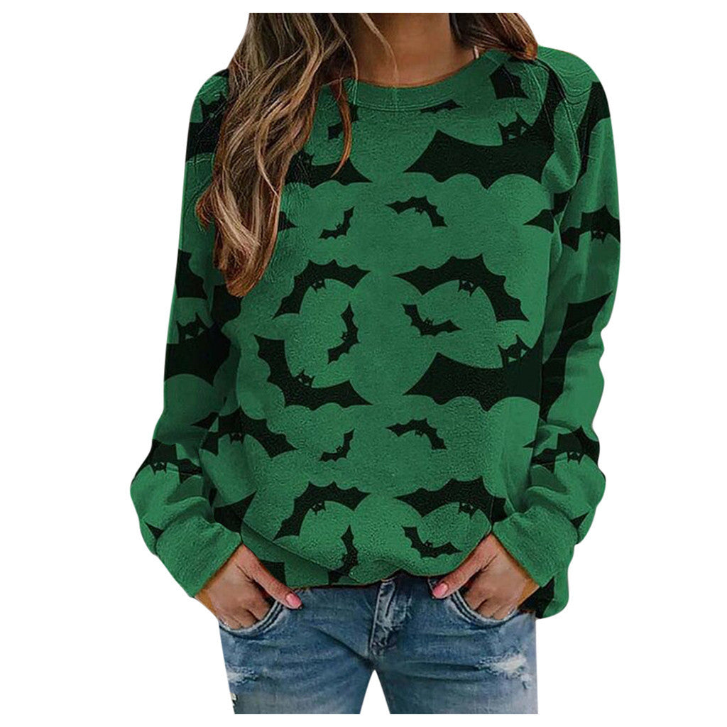 Halloween Pumpkin Head Bat Funny Sweater Women's Round Neck Pullover Print Long Sleeve