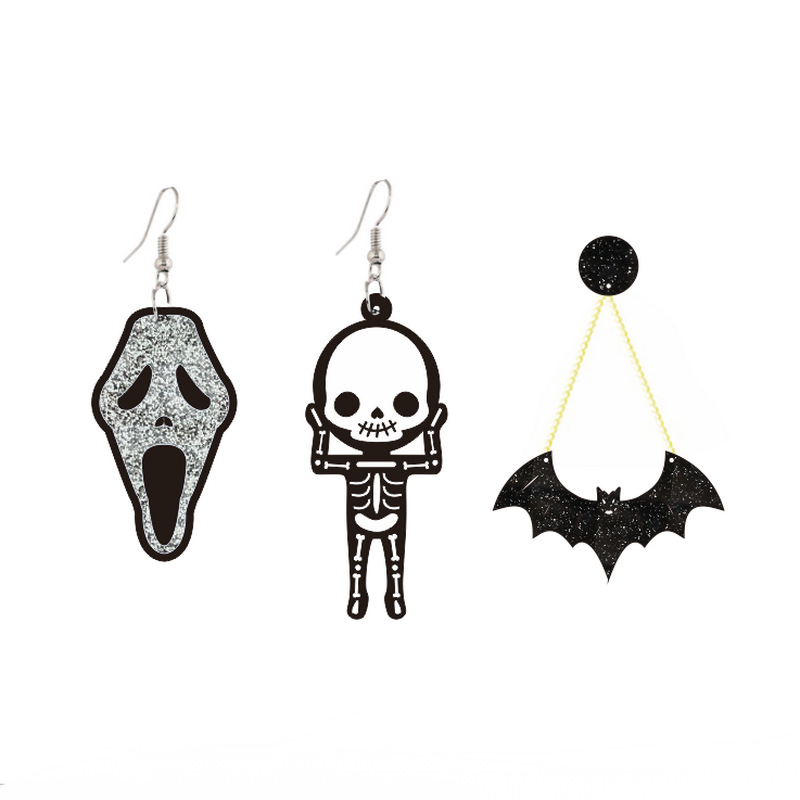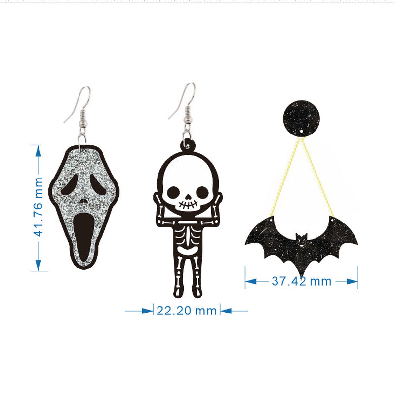 Tags : colorful fashion earrings, ghost horror earrings, halloween skull earrings, non-mainstream jewelry, plastic resin earrings, women's geometric earrings,