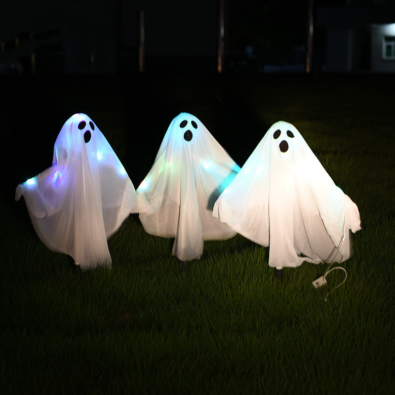 Halloween Skull Ghost Ornament Horror Outdoor Glowing Ghost Stake For Home Bar Haunted House Decoration