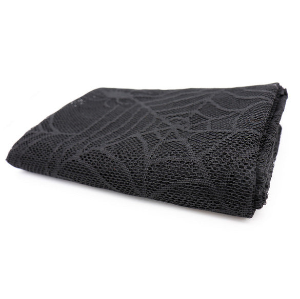 Tags : black lace tablecloth, halloween decoration, party accessory, polyester mesh cloth, rectangle table cover, spider web tablecloth,