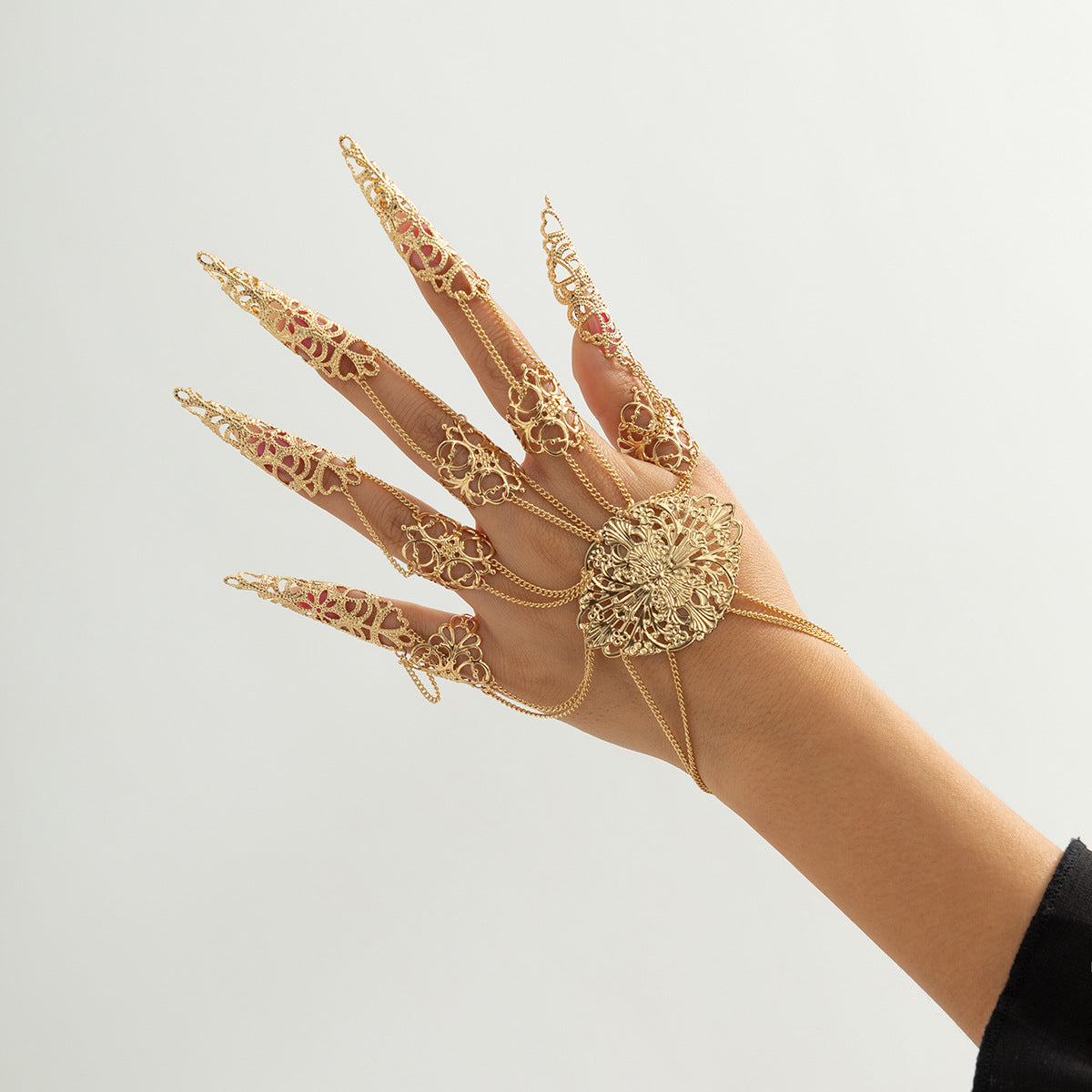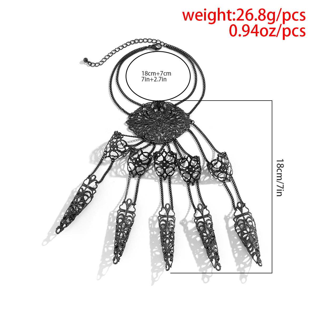 Tags : 2026 fashion accessory, electroplated iron jewelry, gold nail back chain, halloween nail jewelry, taper tassel back chain, women's hand chain,
