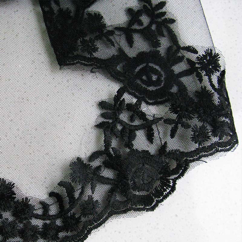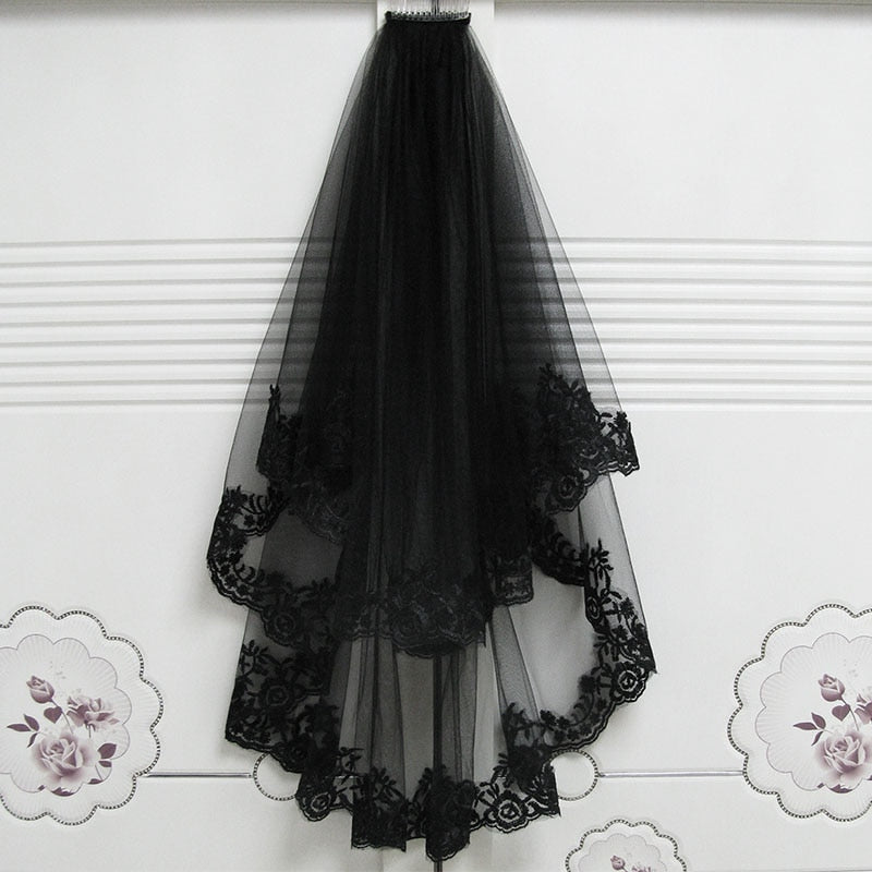 Tags : black lace veil, costume accessory, double-layer lace insert, halloween witch veil, polyester combing yarn, wedding mesh veil,