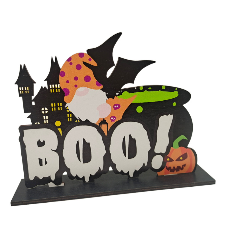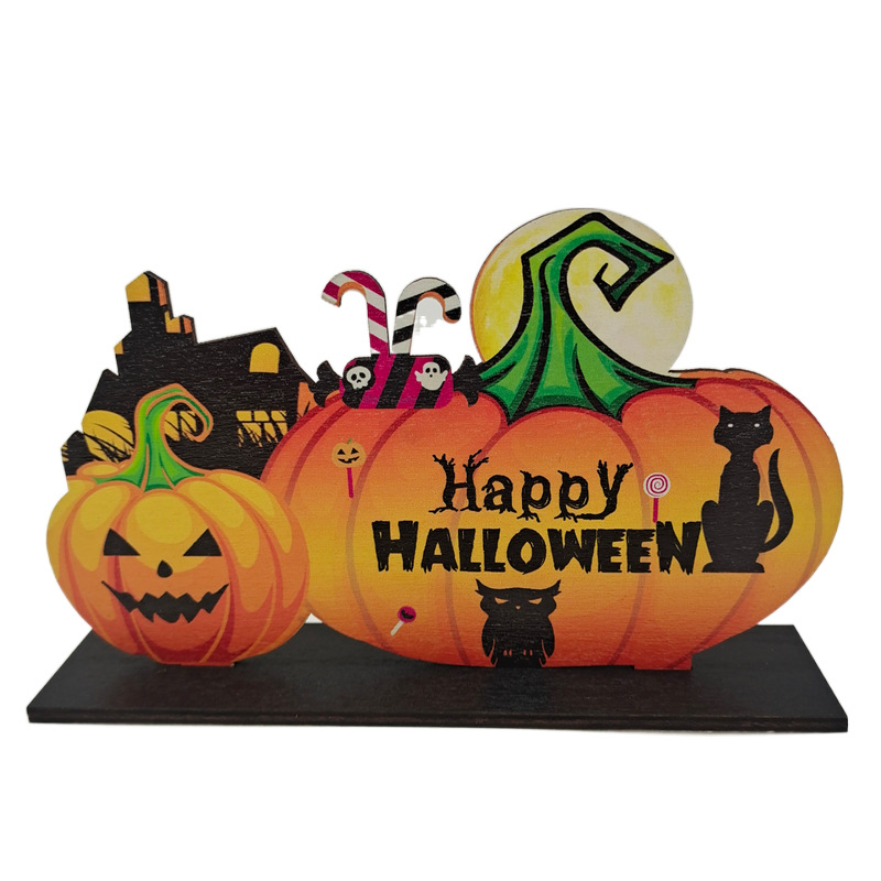 Halloween Wooden Pendant Pumpkin Skull Spider Bat Party Scene Decoration