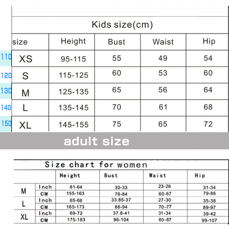 Size: M, L, XL, Children's 110, Children's 120, Children's 130, Children's 140, Children's 150