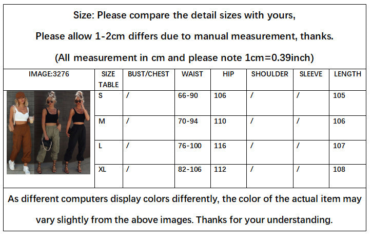Product information: Thickness: medium Color: Black, bronze, olive green Main fabric composition: Polyester (polyester fiber) Pants length: trousers Waist type: elastic waist Size: S,M,L,XL Applicable Gender: Female Pants type: Loose Popular elements: Pocket Craft: drawstring...