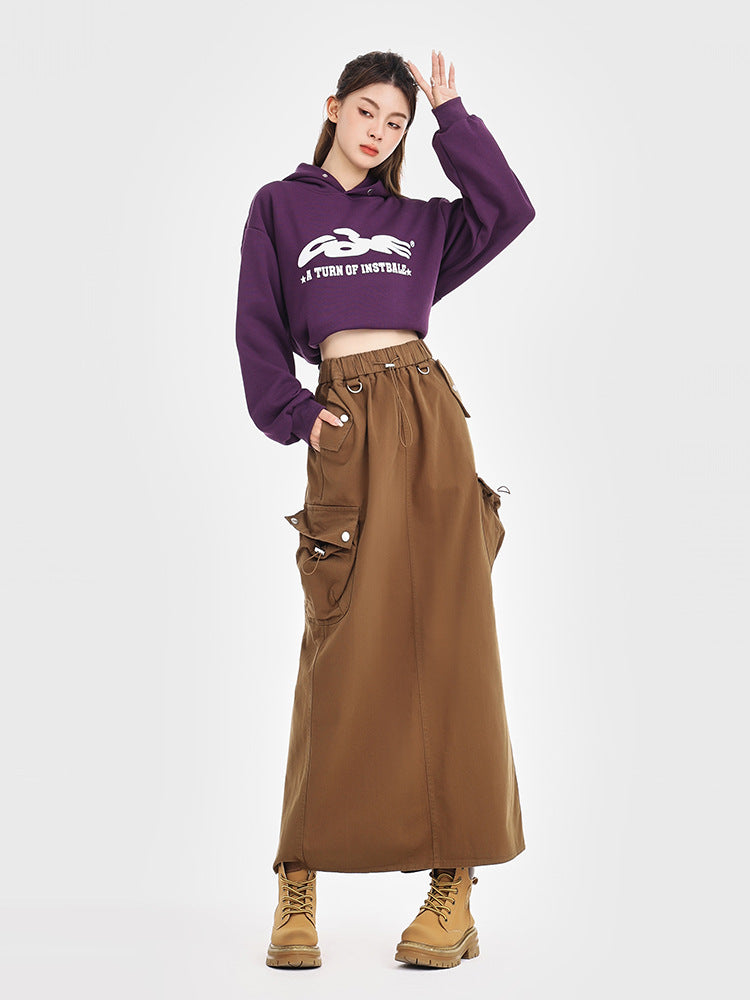 Retro Loose Pockets Workwear Skirt
