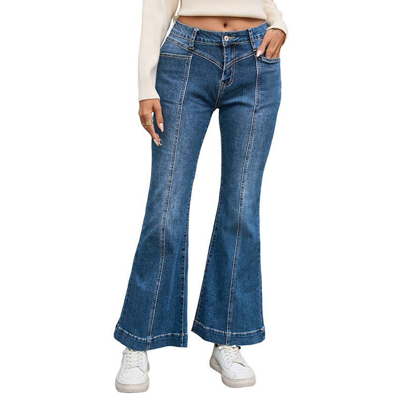 Tags : asian size fashion, blue wide-leg trousers, broken stitching jeans, cotton flared pants, high-waist jeans, street hipster style,