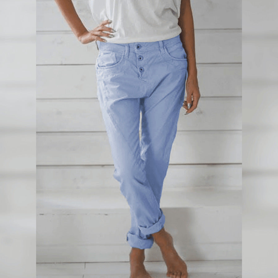 Solid Color Cotton And Linen Fashion Loose High Waist Casual Trousers
