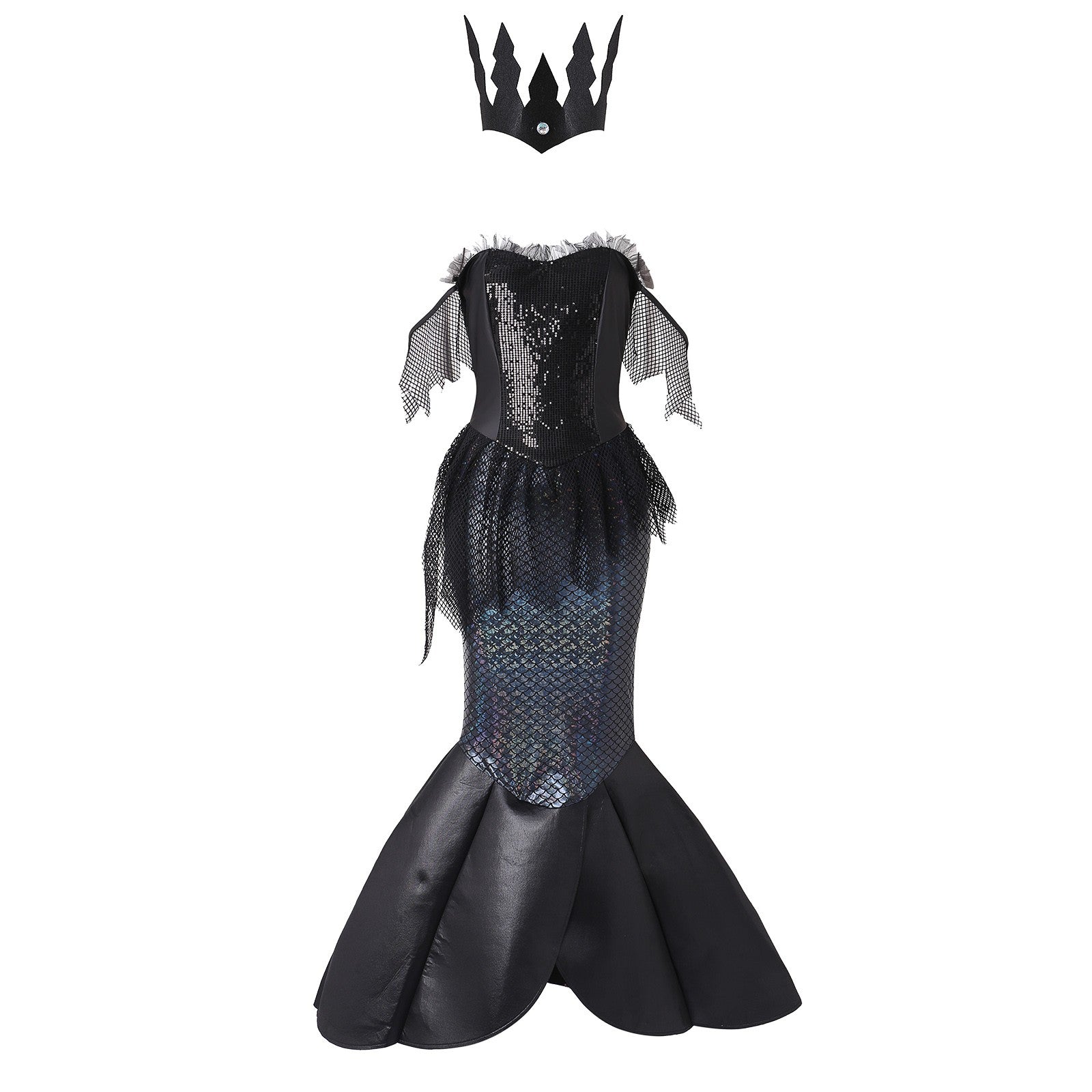 Tags : asian size clothing, fashion mermaid costume, halloween female outfit, plus size party dress, solid color dress, women's polyester dress,