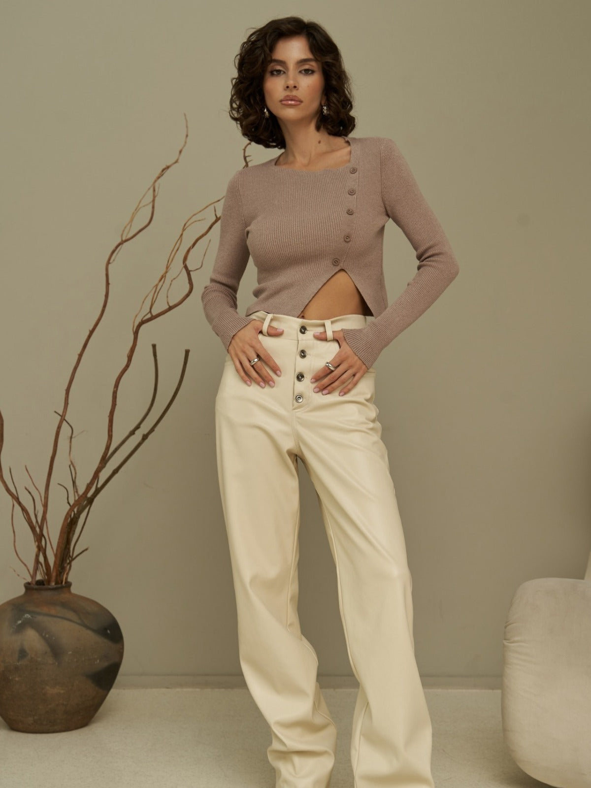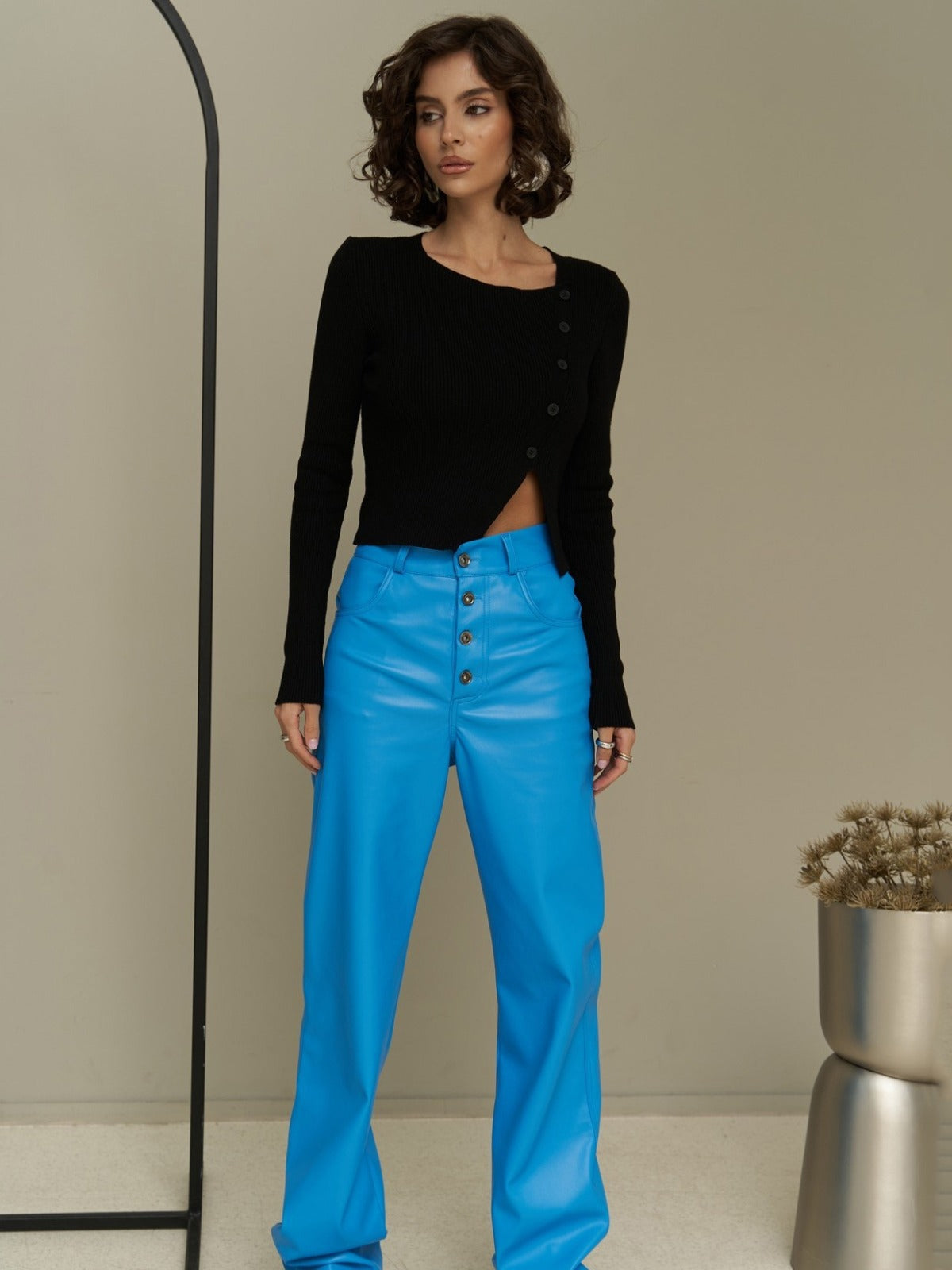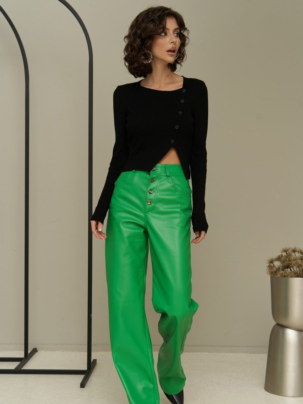 Tags : asian size fashion, colorful leather trousers, high-waist leather pants, polyester leather pants, straight-leg trousers, women's casual pants,