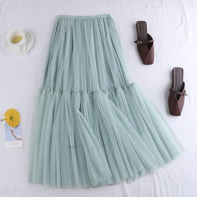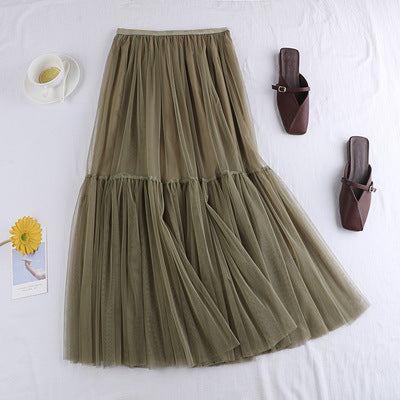 Tulle Skirt Versatile Solid Color Bottoming Mid-length