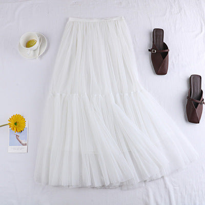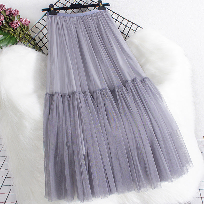 Tags : average size women's skirt, korean style skirt, mesh pettiskirt, polyester mid-length skirt, solid color tulle skirt, versatile bottoming skirt,