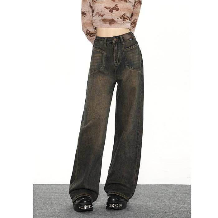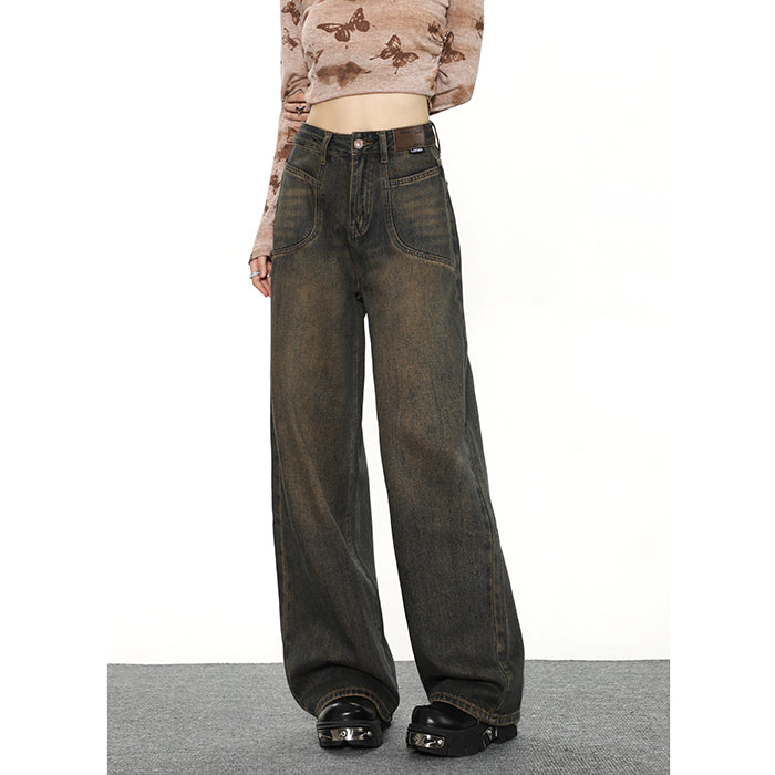 Product information: Size: S M L XL Fabric classification: denim Waist type: high waist Color classification: Dark Quality Edition, Dark Normal Edition Style: Retro and Retro Style: Straight leg pants Size Information: Note:  1. Asian...