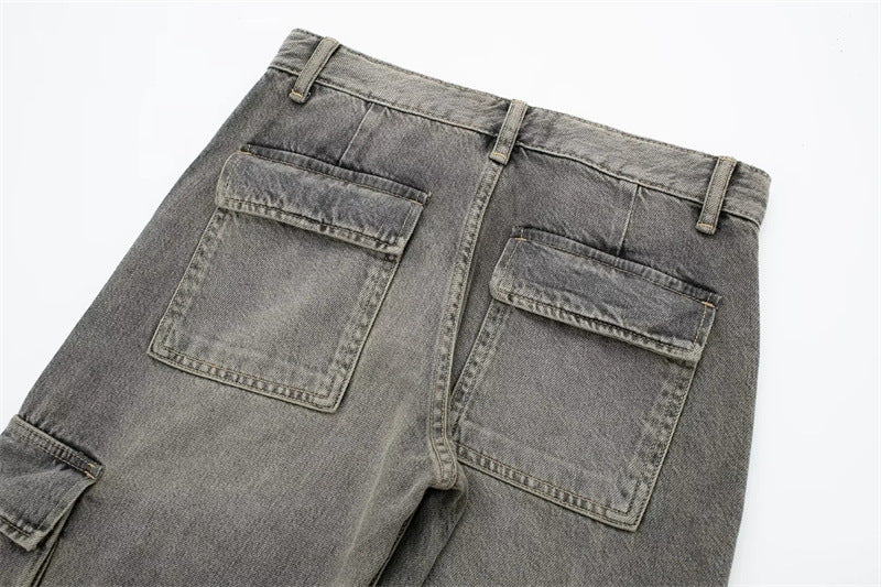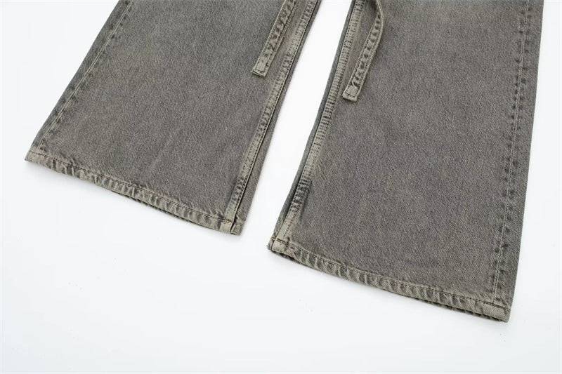 Tags : casual overalls, high waist jeans, mid-waist denim, polyester trousers, street hipster pants, women's straight jeans,