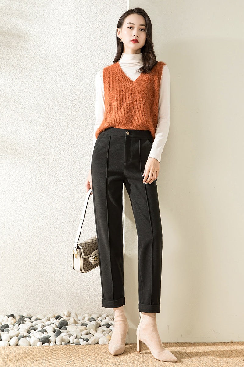 Tags : asian size women's pants, autumn winter pants women, fashionable polyester pants, high waist casual pants, solid color trousers, women's straight loose pants,