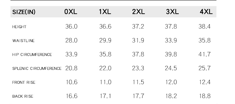 Size: 0XL(L),1XL(XL),2XL,3XL,4XL